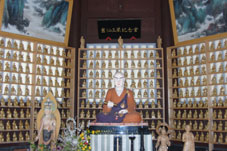 今より1200年前に伝教大師最澄様、弘法大師空海様と共に遣唐使として中国大陸へと渡り、日本人で唯一人 三蔵法師の位を授けられた 霊仙三蔵法師は当山ゆかりの方である。時の中国皇帝 憲宋皇帝より「内供奉十禅師」に選任され、宮中の仏事一切を取り仕切り、「大乗本生心地観経 全八巻」の翻訳事業、「筆受並びに訳語」の二役を任され三蔵の位を頂戴された。廃仏棄釈の波を受け、中国四大霊山の一つである文殊菩薩霊場「五台山」へと逃れ、そこでお亡くなりになられるが、後に慈覚大師円仁様の「入唐求法巡礼行記」にも記される所になり、今日地元有縁有志の御協力を賜わり、2004年に『霊仙三蔵還国記念堂』が建立された。 |